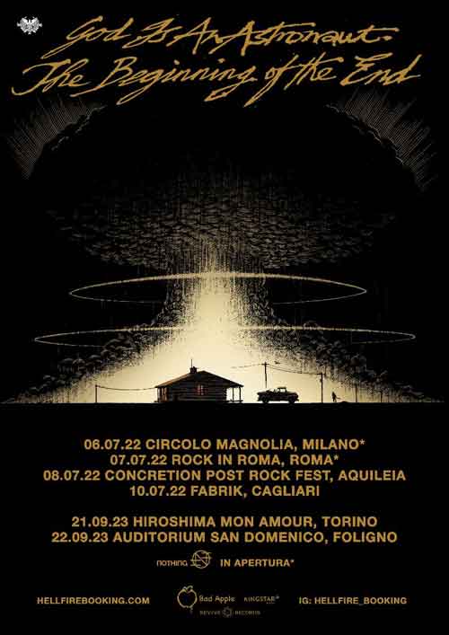 A causa di circostanze al di fuori del loro controllo, Hellfire Booking Agency ed Erocks Production annunciano lo spostamento della prima parte del tour italiano dei God Is An Astronaut al 2023.
