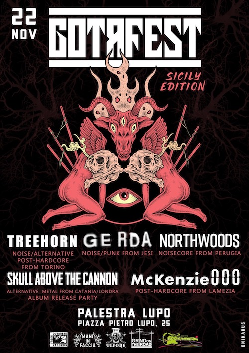 A un anno dalla fine delle attività per il longevo GOTR FEST, Tifone Crew lo fa rivivere con un’edizione speciale tutta siciliana, una sorta di spin-off in collaborazione con Grind On The Road. La prima edizione del fest si terrà venerdì 22 novembre alla Palestra Lupo di Catania e vedrà la partecipazione di Northwoods, Gerda, Treehorn, McKenzie e Skull Above The Cannon. Di seguito i dettagli e la locandina, curata da Onikarus Art.