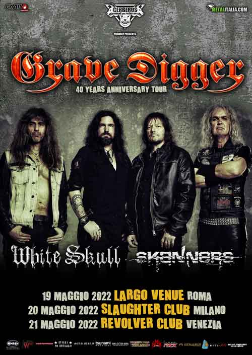 Sono tra le band più importanti ed influenti del panorama heavy metal mondiale, arrivati oggi ad annunciare quello che sarà il loro 20° full length intitolato “Symbol Of Eternity”, album che vedrà la luce il prossimo 26 agosto 2022 via Rock Of Angels Records. I GRAVE DIGGER, dopo le ultime trionfali esibizioni al Metalitalia Festival e all’Ambria Metal Fest, tornano finalmente in Italia per festeggiare con noi i loro 40° di carriera con uno show speciale.