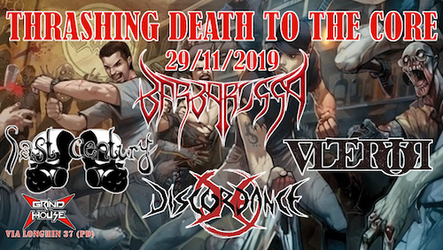 Tornano gli eventi low budget dedicati alle band underground! In particolare avremmo un gustoso mix tra thrash e death metal, il 29 novembre, con headliner i padovani Barbarossa che presenteranno in anteprima al Grind House Club i pezzi del loro prossimo album.