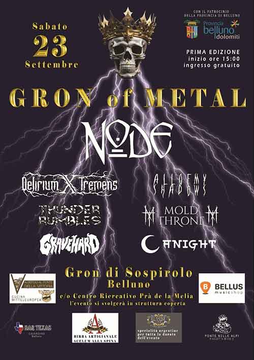Sabato 23 settembre presso gli impianti sportivi del Prà Della Melia in località Gron di Sospirolo avrà luogo la prima edizione del festival Gron Of Metal, un nuovo grande evento che vedrà salire sul palco sette band per una giornata all’insegna del metal di qualità.