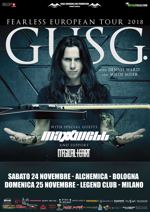 Uno dei musicisti più popolari di questo periodo, il virtuoso chitarrista GUS G (OZZY OSBOURNE, FIREWIND), sarà in Italia per due show esclusivi a Milano e Bologna. Le date faranno parte del tour a supporto di “Fearless”, il nuovo album di recente pubblicazione via AFM records.