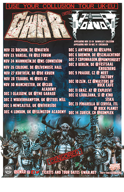 GWAR “Use Your Collusion” Europe & UK 2019 Tour: