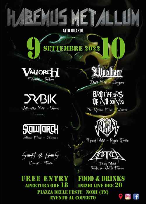 Questo weekend ritorna dopo 2 anni di assenza l’Habemus Metallum. Il celebre festival underground trentino celebra la quarta edizione con il classico format di due giorni, con diverse band della scena metal underground italiana.
