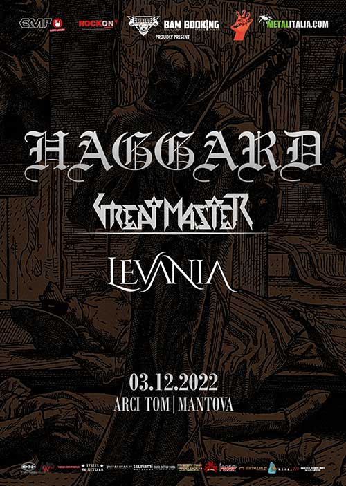 La data di Mantova vedrà alternarsi sul palco i GREAT MASTER, che riprendono le date a supporto del loro più recente lavoro in studio “Thy Harbour Inn” e i LEVANIA, proprio in questi giorni, immersi nelle fasi conclusive dei lavori per il nuovo album sotto la guida di Giuseppe Bassi (FEAR FACTORY) e la partecipazione di Marco Coti Zelati (LACUNA COIL).