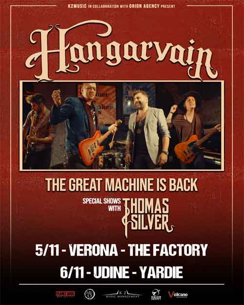Gli Hangarvain, band rock alternative italiana, insieme a Thomas Silver, former member degli Hardcore Superstar, La band integra il cantante svedese nella propria line-up e si esibirà oggi a Udine, dopo il concerto di ieri al The Factory di Verona. Questa collaborazione tra la band e il musicista propone un vasto repertorio, tra cui il singolo “Animal Instinct” uscito a fine 2020 e frutto della riuscita collaborazione tra le due parti.