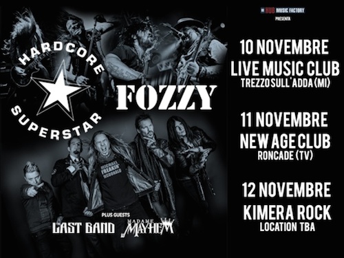 Siamo dunque pronti ad ascoltare dal vivo le nuove uscite di Hardcore Superstar e Fozzy nelle seguenti date: il prossimo 10 novembre al Live Music Club di Trezzo sull’Adda (MI), l’11 novembre al New Age Club di Roncade (TV) e il 12 novembre al Kimera Rock presso l’Orion Club di Roma.