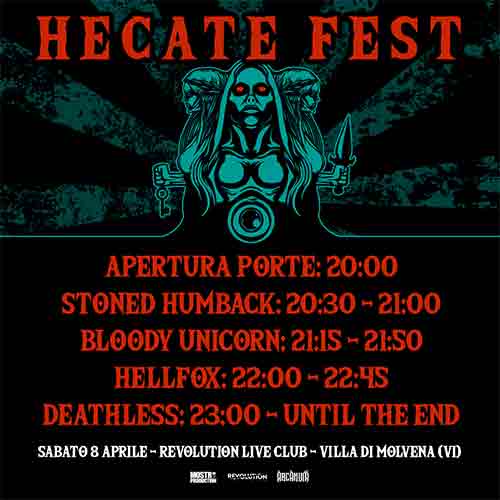 Quattro le band che parteciperanno all’Hecate Fest: Deathless Legacy, Hellfox, Bloody Unicorn e Stoned Humbak.