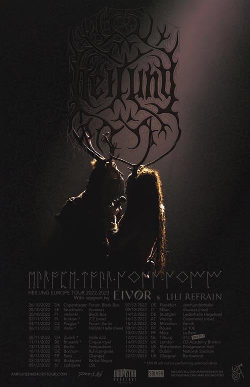 Gli enigmatici HEILUNG svelano aggiornamenti per le date del loro tour europeo 2022-2023. Oltre ai concerti aggiunti, compresa una data a Milano, la band ha svelato pure i supporter, ovvero Eivør e Lili Refrain .