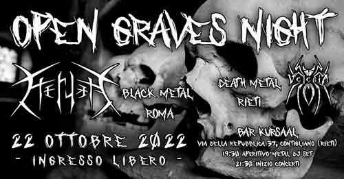 Ad aprire il concerto saranno i reatini Velenia, con il nuovo batterista, alle prese con le consuete bordate death metal.