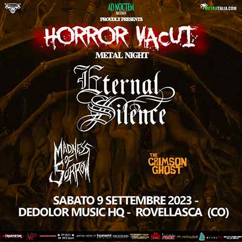 Horror Vacui Metal Night è la serata per gli amanti del punk e del metal a sfumature gothic horror ccon tre band: Eternal Silence, Madness of Sorrow e The Crimson Ghost.