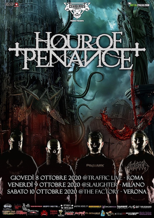Con una carriera ventennale, otto dischi all’attivo e innumerevoli concerti in tutto il globo, gli HOUR OF PENANCE sono sicuramente una delle band che hanno imposto il proprio marchio di fabbrica nel vasto panorama del death metal mondiale. Autori di autentici capolavori come “The Vile Conception” e “Sedition”, alla fine del del 2019 pubblicano “Misotheism”, album che ancora una volta li conferma tra i grandi del genere.