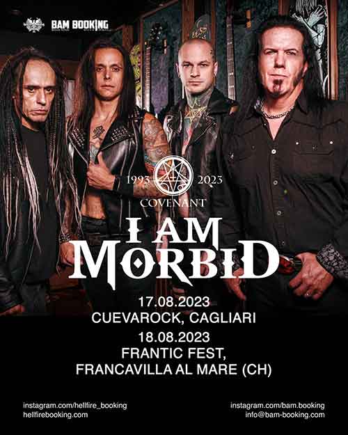 I Am Morbid di David Vincent, ex frontman dei Morbid Angel, accompagnato da Pedro «Pete» Sandoval, altro ex Morbid Angel, Bill Hudson (NorthTale, Doro, Udo) e Richie Brown (Trivium, Exmortus), saranno in Italia per una seconda data per celebrare il trentesimo anniversario dell’album “Covenant”, pubblicato appunto dai Morbid Angel.