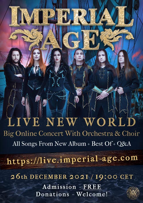 La Symphonic Metal band russa IMPERIAL AGE invita la sua vasta fanbase mondiale ad un live show streaming colossale, un evento che offrirà anche brani dal prossimo album “New World”, con un assaggio di quel che dovrebbe essere il tour vero e proprio il quale inizia il 7 gennaio a Parigi.