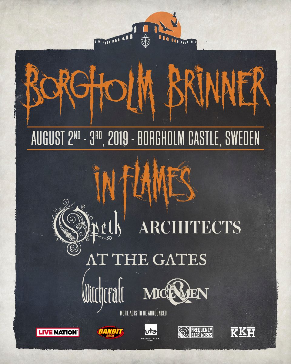 Inoltre, gli IN FLAMES hanno annunciato altri nomi per la seconda edizione del loro festival annuale, il BORGHOLM BRINNER, che avrà luogo ancora una volta al Borgholm Castle sull’isola di Öland in Svezia il 2 e 3 Agosto, 2019. La famosa forza internazionale, gli ARCHITECTS, faranno parte della line-up di quest’anno, come gli svedesi WITCHCRAFT. Entrambe le band si aggiungono alla già incredibile line up per suonare a fianco dei maestri del prog OPETH, i pionieri del melodeath AT THE GATES e i californiani OF MICE AND MEN – e ovviamente i promotori del festival, gli IN FLAMES, che suoneranno due set speciali.
