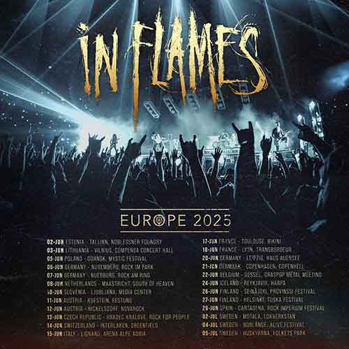 Annunciato un tour da parte degli In Flames che si terrà tra giugno e luglio del 2025, con a supporto in una serie di date Jinjer, Heaven Shall Burn, Lacuna Coil e Orbit Culture. l’Italia è compresa nella lista delle città con Lignano presso l’Arena Alpe Adria.