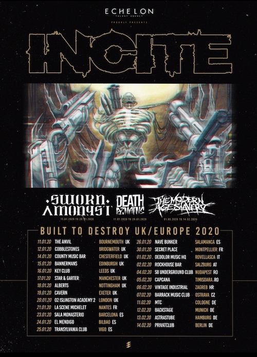 Gli Incite saranno in Europa dal 21 gennaio e terranno un concerto anche in Italia, l’1 febbraio a Rovellasca presso il Dedolor Music HQ. Con la band di Richie Cavalera ancheSworn Amongst, Death Remains e The Modern Age Slavery.