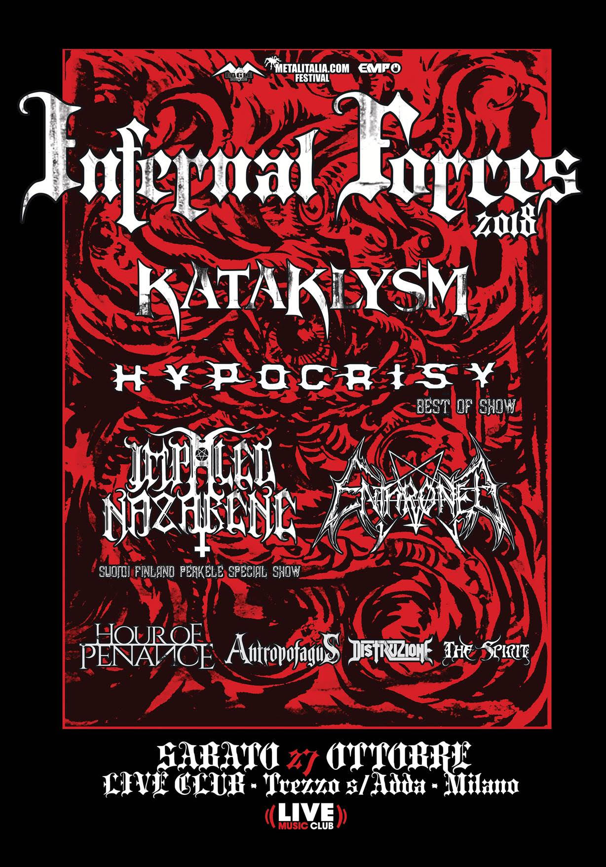 È disponibile il trailer del festival Infernal Forces 2018 con KATAKLYSM, HYPOCRISY, IMPALED NAZARENE , ENTHRONED e molti altri in programma per Sabato 27 Ottobre al Live Music Club di Trezzo sull’Adda.