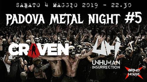 Per sabato 4 maggio il Grind House Club di Padova propone una serata dedicata a due delle band Metal più interessanti nel padovano: gli Unhuman Insurrection ed i Craven.