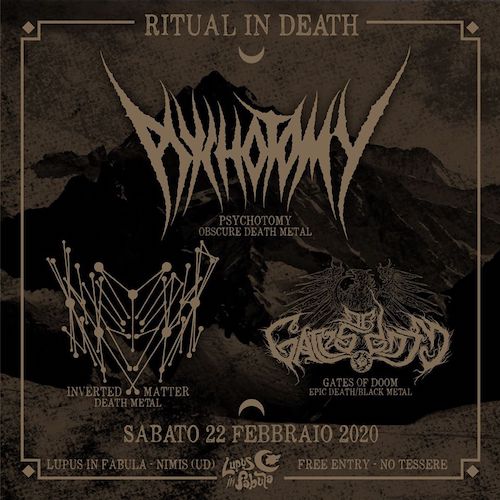 Sabato 22 febbraio al Lupus In Fabula di Nimis (UD), saranno di scena Pyschotomy, Inverted Matter e Gates Of Doom. Per questo concerto l’ingressoè gratuito. Per maggiori dettagli QUI.