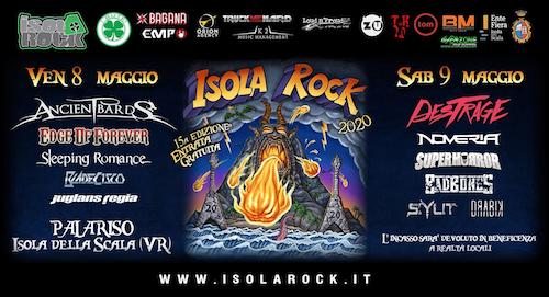 L’Associazione i Butei presenta la 15esima edizione della manifestazione ISOLA ROCK 2020. La Manifestazione si terrà l’8 e il 9 maggio a Isola della Scala (VR), di seguito le band che suoneranno: