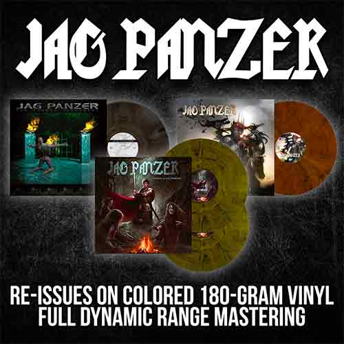 Arrivano le già annunciate, in novembre, ristampe in vinile di due album dei Jag Panzer. Si tratta di “The Fourth Judgement” del 1997, “Thane To The Throne” del 2000, del “Mechanized Warfar”. Nuova opera di masterizzazione da parte di Bart Gabriel, disponibili in vinili da 180gr e con “Thane To The Throne” che trova una copertina riveduta da Dusan Markovic che in precedenza ha lavorato a quella di “The Hallowed”, ovvero l’ultimo album in studio della heavy metal band statunitense. I tre vinili sono in copie limitate QUI.