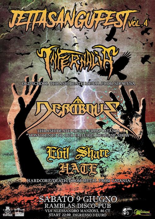 Jettasangu Fest è la prima produzione del collettivo catanese Tifone Crew, dedicata alle realtà estreme locali e giunta al quarto capitolo, l’ultimo previsto per questa stagione. Nelle tre serate precedenti, datate 17 febbraio, 7 aprile e 12 maggio, si sono alternati sul palco Gangrenctomy, Fordømth, Whispering Haze, BuiOmegA, Torpore, 600000 Mountains, Coexistence, Mass Turbo e Undergrav.