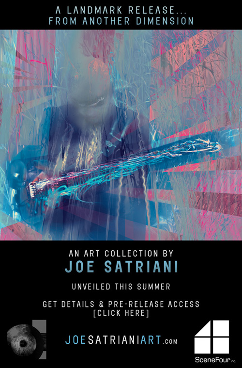 Joe Satriani rivelerà una nuova dimensione della chitarra durante l’estate. Il chitarrista ed il team artistico SceneFour di Los Angeles stanno lavorando alla creazione di artwork come mai visti prima. Un potente fusione di arte visuale generata dalla performance di chitarra e movimento della mano.