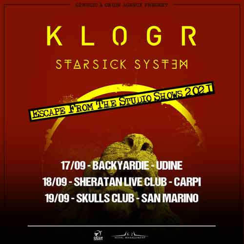 Nel bel mezzo delle registrazioni dei rispettivi nuovi album, due delle band più interessanti del panorama alternative uniscono le forze in un pacchetto 100% italiano da non perdere: i KLOGR, tra le realtà più attive del nostro paese a livello internazionale, tornano on the road dopo un lunghissimo excursus europeo pre-covid che li ha portati a seguire in tour The Rasmus, Buckcherry, Butcher Babies, Infected Rain e tanti altri.