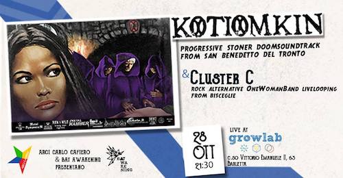 Bat Awakening e Arci Cafiero tornano a collaborare con evento dal retrogusto cinematografico. Per la prima in Puglia i Kotiomkin, fenomenale duo di San Benedetto del Tronto autore di fantomatiche colonne sonore che riprendono la tradizione dei grandi autori italiani del passato del calibro di Ortolani, Frizzi, Maglione, Cordio, Pisano e Goblin arricchendola con sane dosi di progressive, stoner e doom. Nel giro di un paio d’anni la band ha scritto ben due soundtrack inedite per altrettanti film immaginari: l’horror peplum “Maciste Nell’Inferno Dei Morti Viventi” e il più recente ed acclamato spaghetti thriller “Squartami Tutta”, quest’ultimo, in particolare, sarà proposto per intero durante il concerto!