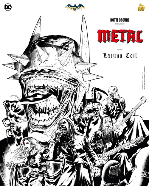 Un’evento epico per la storia della musica e del fumetto! Vi siete mai chiesti che musica ascolta il cavaliere oscuro di Gotham City? Forse anche da questo punto di vista Bruce Wayne ha un’identità nascosta e, mentre di giorno lo immaginiamo rilassarsi sulle note di Mozart, il suo alter ego mascherato sembra ami ritmi più dirompenti. La storia è ancora tutta da raccontare… Il prossimo autunno vedremo il nostro uomo pipistrello comparire in versione Metal su un palcoscenico dove ad esibirsi sono i LACUNA COIL.