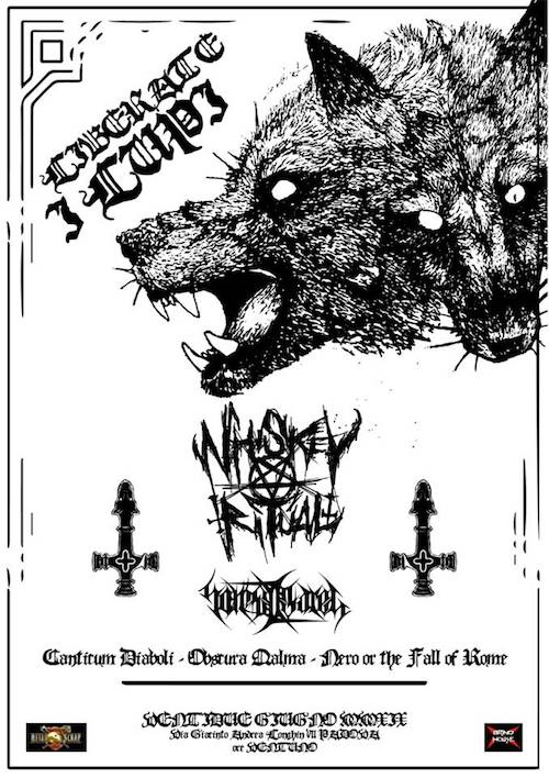 Il Grind House Club di Padova e Padova Estrema sono fieri di presentarvi il loro nuovo appuntamento con la scena Metal estrema. Questa volta, per salutare malignamente l’arrivo dell’estate (e rivederci alla stagione successiva), è stato organizzato un minifestival Black Metal: Liberate i Lupi, sabato 22 giugno. Headliner della serata saranno i Whiskey Ritual, nota band parmense nata nel 2008 e proponente un durissimo e prepotente Black‘n’Roll, ibrido tra Black Metal e Punk Rock vecchia scuola.