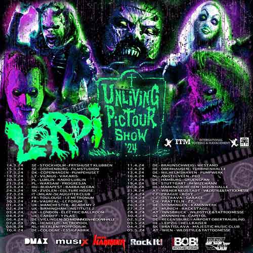 Il 14 marzo inizierà da Stoccolma il “Unliving Pictour Show 2024” dei Lordi e fino a maggio toccherà tante città europee. Il tour il 27 marzo 2024 passerà da Paderno Dugnano (MI) per una tappa sul palco dello Slaughter Club. Questa data è stata aggiunta di recente insieme ad altre e per tutte ormai le prevendite dei biglietti sono già iniziate.
