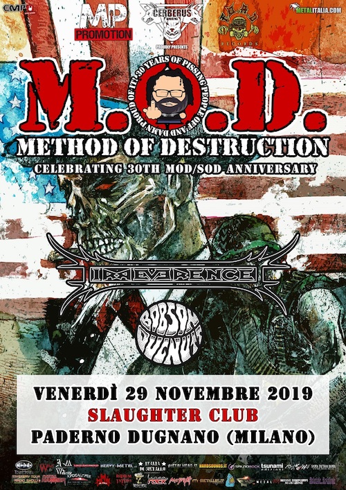 Si avvicina la data del 29 Novembre 2019 che vedrà il ritorno in Italia di Billy Milano e dei suoi M.O.D. (Method Of Destruction) per festeggiare i 30 anni onorata carriera. Come già annunciato in precedenza, saranno i veterani IRREVERENCE a tenere alto lo stendardo del thrash metal Italiano.