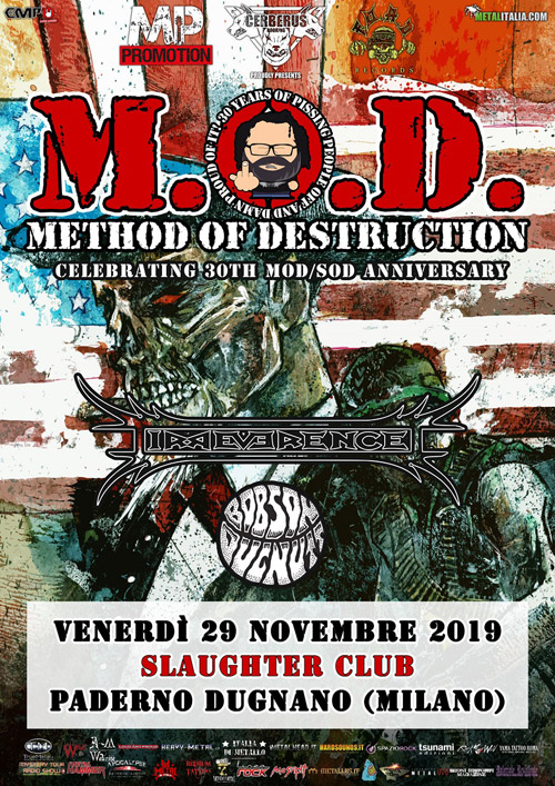 È tutto pronto per la data di domani che vedrà il ritorno di Billy Milano, con i suoi i suoi M.O.D. (Method Of Destruction), per festeggiare i 30 anni di onorata carriera. L’appuntamento è allo Slaughter Club di Paderno Dugnano (MI).