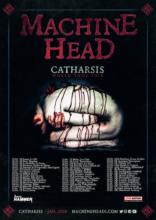 Il cantante/chitarrista Robb Flynn dichiara: “È passato troppo tempo da quando abbiamo demolito i club europei! Ci siamo presi una pausa straordinariamente produttiva per comporre il nostro nuovo album ‘Catharsis’, ma ora è tempo per i MACHINE HEAD di tornare a spaccare! Il nostro ultimo tour ‘Evening With’ è stato incredibile, quindi anche le prossime date saranno concerti in cui suoneremo due ore e mezza / tre, senza band di apertura”.