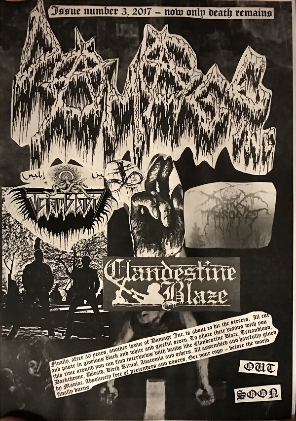Maniac dichiara: “I lavori per Damage Inc. #3 procedono a pieno ritmo. Interviste con TEITANBLOOD, CLANDESTINE BLAZE, DÖRAID, BIRTH RITUAL, DARKTHRONE e molti altri. Sono passati 30 anni dall’ultima edizione, quindi direi che è ora. Un formato fatto con ritagli incollati. Niente di patinato. Solo oscurità e buona musica”.
