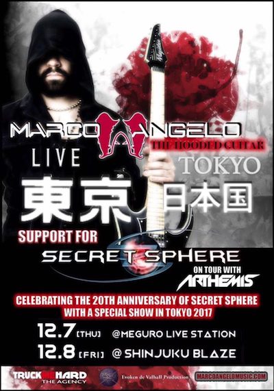 Il chitarrista Marco Angelo, conosciuto come “The Hooded Guitar”, sará in live in Giappone con il progetto solista, al fianco di due band di spicco del panorama italiano ed internazionale: Secret Sphere che celebreranno i loro 20 anni di attività, e gli ARTHEMIS del chitarrista Andy Martongelli.