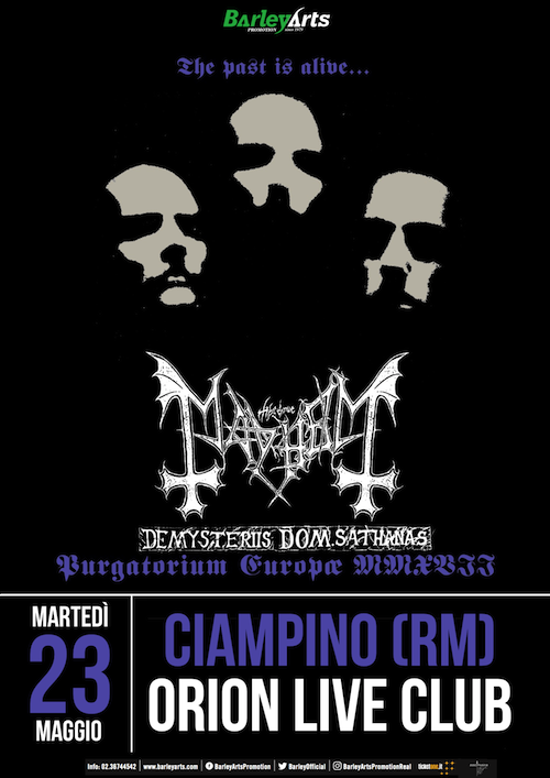 I fondatori del true black metal norvegese, i Mayhem, saranno sul palco dell’Orion Live Club di Ciampino (RM) martedì 23 maggio per suonare per intero lo storico album di debutto De Mysteriis Dom Sathanas (Deathlike Silence, 1994). I biglietti saranno disponibili sul circuito Ticketone (online e punti vendita) da domani, giovedì 23 marzo.