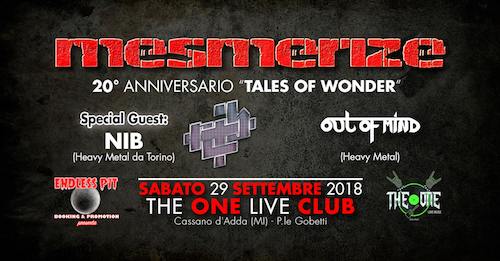 – MESMERIZE: Terzo e ultimo appuntamento del 2018 con la storica Heavy Metal band milanese, per i festeggiamenti del 20° anniversario del loro disco d’esordio “Tales Of Wonder”, con un concerto totalmente incentrato sui brani di quell’album!! Non perdete l’occasione di risentire dal vivo ancora una volta le canzoni che hanno fatto la storia del gruppo!!