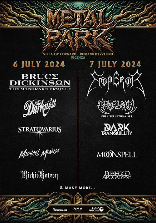 Altre conferme nella lista di artisti che si esibiranno al METAL PARK 2024, il festival realizzato con la collaborazione di AMA Music Festival, il quale si terrà il 6 e 7 Luglio 2024 nel parco di Villa Ca’ Cornaro a Romano D’Ezzelino (VI).
