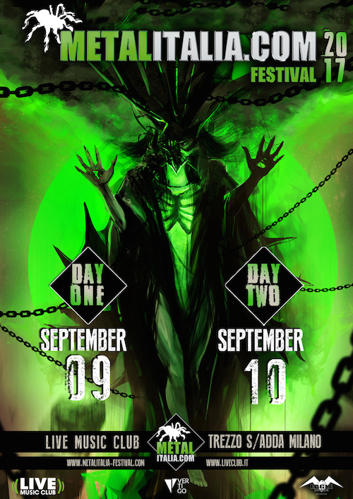 Metalitalia.com, Vertigo ed Eagle Booking Live Promotion annunciano la sesta edizione del Metalitalia.com Festival! L’evento, che negli scorsi anni ha ottenuto un ottimo successo, affermandosi come uno degli appuntamenti fissi per la stagione concertistica italiana, quest’anno raddoppia! La nuova edizione si svolgerà infatti su due giornate, nel weekend del 9 e 10 settembre 2017, come da tradizione al Live Club di Trezzo sull’Adda, locale che nelle passate edizioni ha dimostrato una versatilità unica per questo genere di eventi.