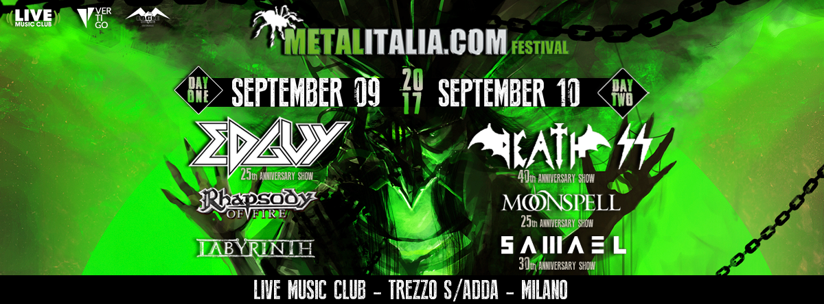Metalitalia.com, Vertigo ed Eagle Booking Live Promotion sono lieti di annunciare le prime e importanti conferme per il Metalitalia.com Festival 2017, evento che si terrà Sabato 9 e Domenica 10 settembre al Live Club di Trezzo sull’Adda (MI):