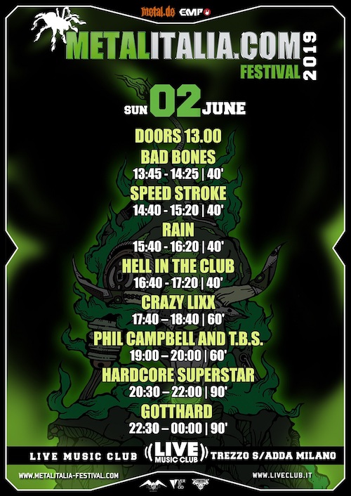 Di seguito gli orari delle esibizioni di tutte le band in cartellone del Metalitalia.com Festival 2019. Nei prossimi giorni verranno comunicati i Meet&Greet gratuiti con le band.