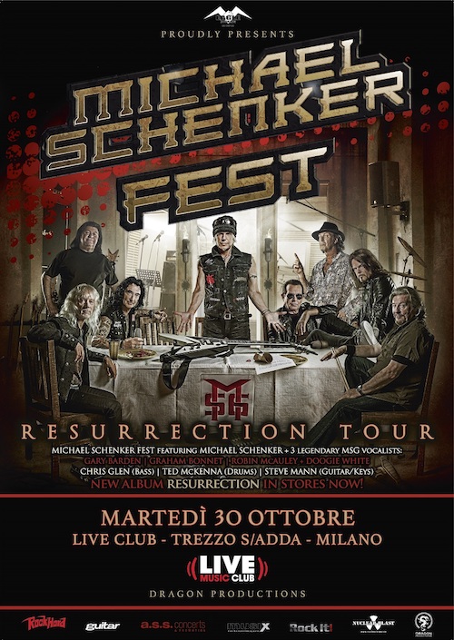 Dopo la pubblicazione a marzo del nuovo album “Resurrection” entrato in classifica in tutto il mondo, Michael Schenker terrà uno show esclusivo italiano accompagnato dai tre cantanti originali dei MICHAEL SCHENKER GROUP Gary Barden, Graham Bonnet e Robin McAuley più Doogie White dei MICHAEL SCHENKER’S TEMPLE OF ROCK ed ex-RAINBOW per uno spettacolo unico e indimenticabile con brani del nuovo disco ed una carrellata di classici di SCORPIONS, U.F.O. e M.S.G..