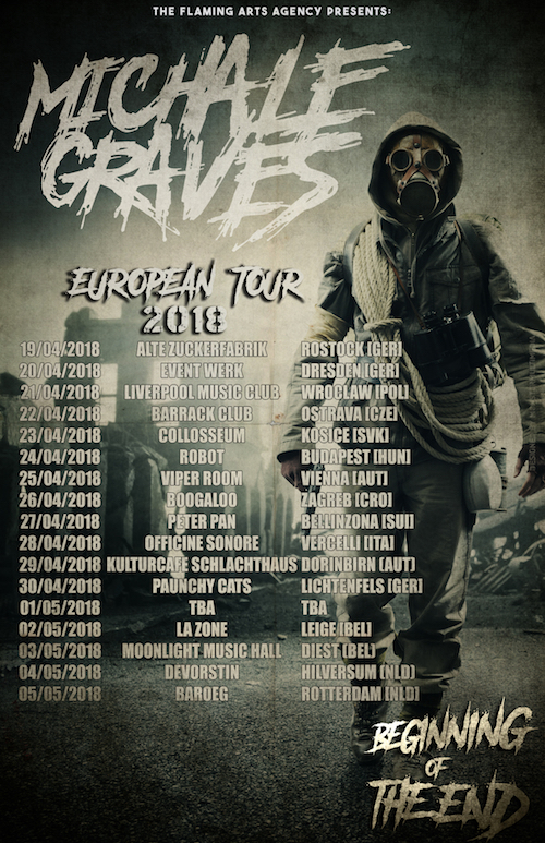 L’ex voce dei Misfits Michale Graves porterà in Europa il suo “Beginning of The End World Tour” e tra le date del tour c’è anche Vercelli, il 28 di aprile.