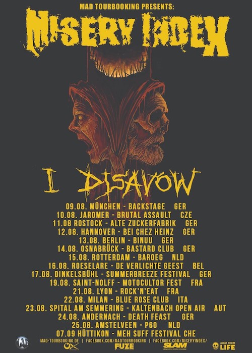 Gli americani Misery Index saranno in Europa nel mese di agosto, dove parteciperanno anche a diversi festival. Come già comunicato qualche tempo fa, la band si esibirà il 22 agosto allo Slaughter Club di Paderno Dugnano (MI). QUI l’evento FB.