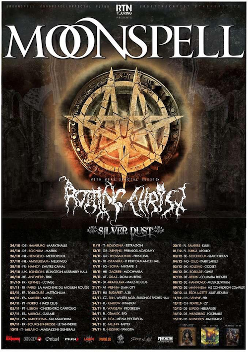 I Moonspell porteranno nel loro tour autunnale i Rotting Christ. Un giro di concerti nel continente europeo che toccherà tante città, tra le quali anche due italiane. Ovvero Milano e Bologna rispettivamente il 10 e l’11 novembre. Con loro anche i Silver Dust.