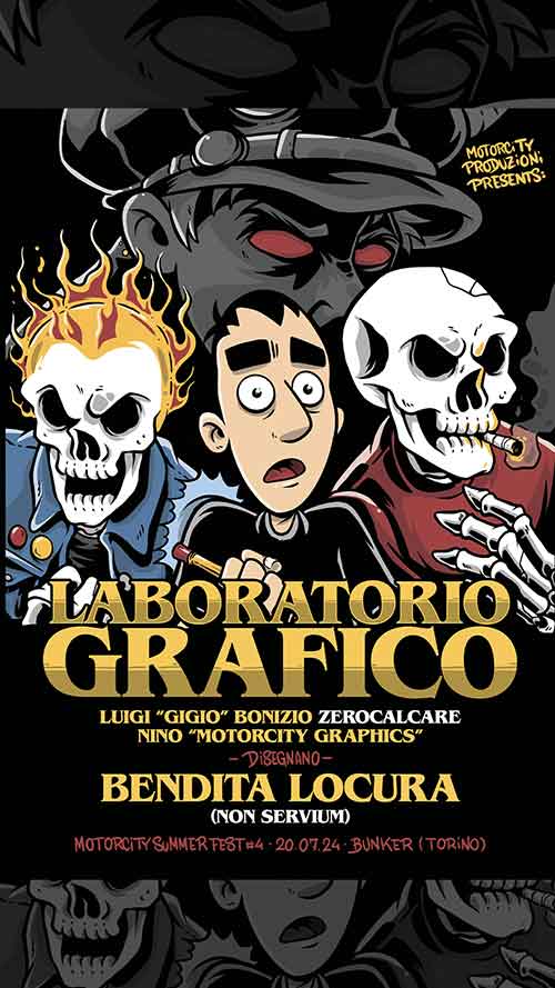 La quarta edizione di ‘Motorcity Summer Festival’ , in programma Sabato 20 luglio 2024 al Bunker di Torino (circa 50 tra lavoratori e volontari coinvolti), è quella dei grandi numeri ma anche della qualità delle proposte, con il meglio della scena punk hardcore italiana ed europea, ma anche con il suggestivo appuntamento del laboratorio grafico che vedrà nuovamente la presenza di Zerocalcare che insieme a Gigio Bonizio ed a Nino di Motorcity Graphics illustreranno davanti al pubblico le atmosfere della canzone ‘Bendita Locura’ dei Non Servium.