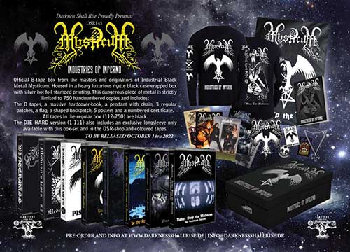 I norvegesi MYSTICUM, i creatori dell’industrial black metal, pubblicano “Industries of Inferno”, un box di cassette estremamente limitato, per veri collezionisti.